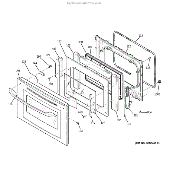 The Oven Door Gasket is an OEM part for GE ranges. It wraps around the door perimeter creating an insulating barrier. Causes related to standard wear absorbing repeated heating/cooling cycles without failure. Exposure to accidental cuts or abrasions during cleaning can also damage integrity. Symptoms include: