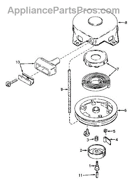 This is a starter dog that is located right next to the retainer in many types of lawn and garden equipment. It is made of durable metal. This part is responsible for engaging the recoil starting system on the engine. Sometimes the starter dog can become damaged or worn, which will result in an engine that has trouble starting. In this situation, the starter dog will need to be replaced to ensure the lawn equipment works as expected.If the starter dog needs to be replaced, a pair of pliers will be needed for the process. Place the tool on a level surface and disconnect the spark plug wire. The blade assembly and clutch assembly will need to be removed to get access to the starter dog. Take this part out of the tool and replace it with a quality new component. Reassembly the other parts before use.This is a genuine OEM replacement part that is sourced directly from the manufacturer. It is made to be compatible with lawnmowers, snowblowers, tillers, edgers, and generators manufactured by Tecumseh, Briggs & Stratton, Toro, Cub Cadet, and Craftsman. The starter dog is sold as an individual part.