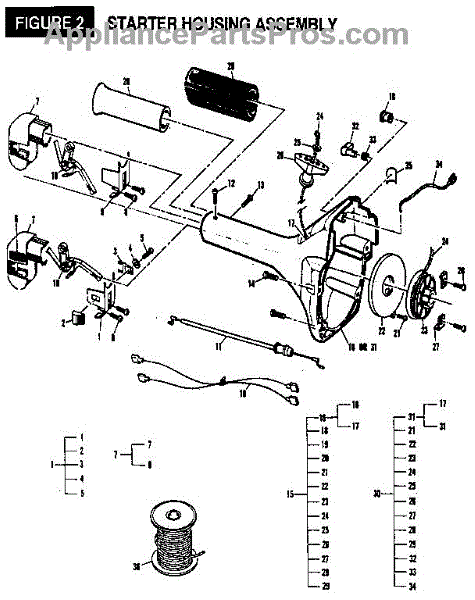 Parts for Mcculloch MAC2815-11400128-19: Starter Housing Assembly Parts