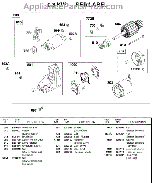Parts for Briggs & Stratton 433447-0115-01: Starter Motor, 0.8Kw Parts