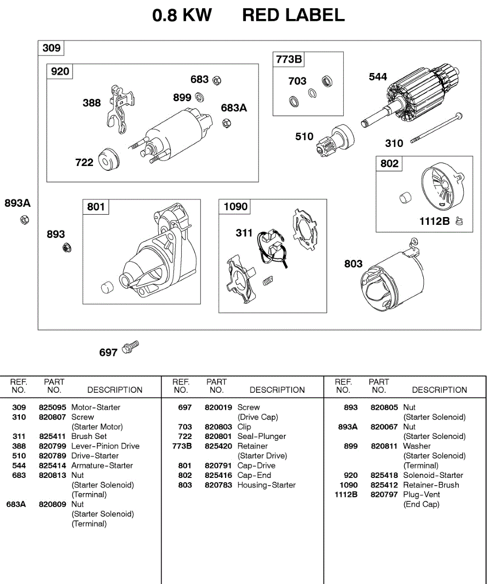 Parts for Briggs & Stratton 433447-0116-E2: Starter Motor, 0.8Kw Parts