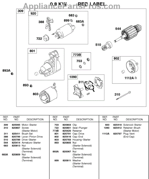 Parts for Briggs & Stratton 437447-0105-99: Starter Motor 0.8Kw Red Label Parts