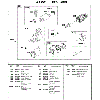Parts for Briggs & Stratton 437447-0205-E2: Starter Motor 0.8Kw Red Label Parts