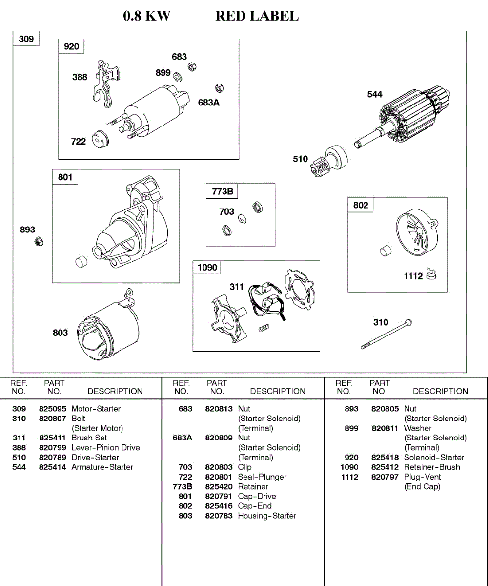 Parts for Briggs & Stratton 580447-0316-99: Starter Motor, 0.8Kw Red Label Parts