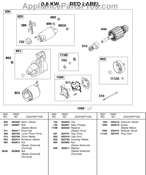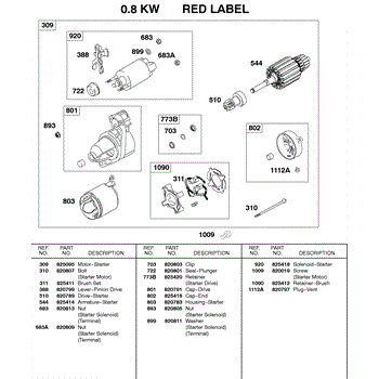 Parts for Briggs & Stratton 581447-0375-E2: Starter Motor 0.8 Kw Red Label Parts
