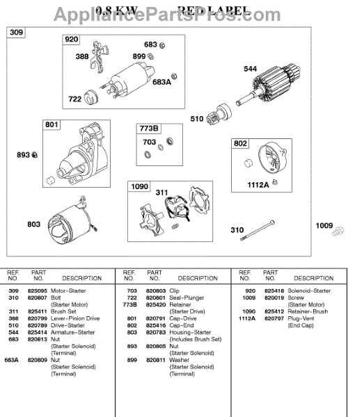 Parts for Briggs & Stratton 583447-0217-E2: Starter Motor 0.8Kw Red Label Parts