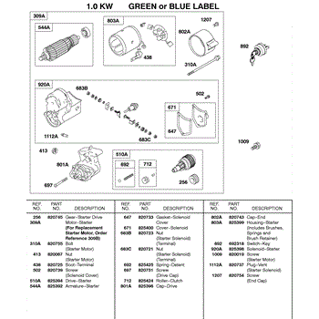 Parts for Briggs & Stratton 580447-0328-E2: Starter Motor, 1.0Kw Green Or Blue Label Parts
