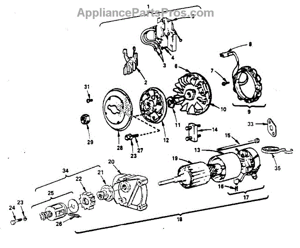 Parts for Briggs & Stratton 0749-01: Starter Motor Group Parts