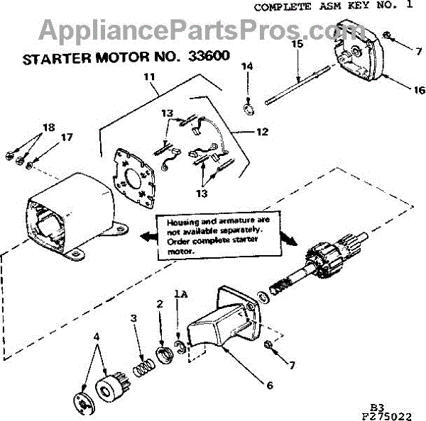 Parts for Craftsman 143275022: Starter Motor Parts