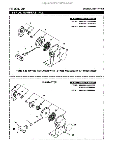 This is a starter kit meant to replace the starters used on a number of small gasoline powered Echo engines found in lawn and landscaping equipment. This is found on devices such as gasoline powered drills, edgers, trimmers, hedge clippers, brush cutters, and grass trimmers. This part actually replaces the complete starter assembly, including the pull rope, pulley, spring, and handle. Through normal use, starter pulleys eventually sustain damage. A sign of this is when a user pulls and pulls on the starter rope, but the flywheel that turns the engine simply does not engage. While individual pieces of the starter assembly can be replaced, it is generally considered wiser to replace the entire assembly, since every part will have sustained similar wear and tear. Replacing the assembly all at the same time saves money and added time spent working on a disassembled machine. Replacing the starter assembly with a new one is a comparatively easy task, since the user does not have to worry about compressing the recoil starter or tensioning the pull rope. The new assembly is simply bolted onto the device. It is most important, however, to use a starter assembly like this one that is OEM certified to match the original starter assembly perfectly.