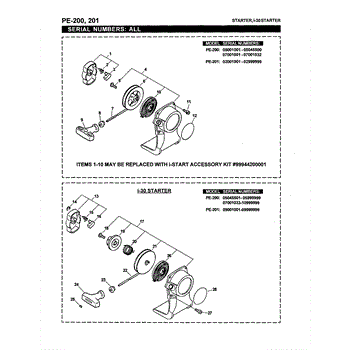 This is a starter kit meant to replace the starters used on a number of small gasoline powered Echo engines found in lawn and landscaping equipment. This is found on devices such as gasoline powered drills, edgers, trimmers, hedge clippers, brush cutters, and grass trimmers. This part actually replaces the complete starter assembly, including the pull rope, pulley, spring, and handle. Through normal use, starter pulleys eventually sustain damage. A sign of this is when a user pulls and pulls on the starter rope, but the flywheel that turns the engine simply does not engage. While individual pieces of the starter assembly can be replaced, it is generally considered wiser to replace the entire assembly, since every part will have sustained similar wear and tear. Replacing the assembly all at the same time saves money and added time spent working on a disassembled machine. Replacing the starter assembly with a new one is a comparatively easy task, since the user does not have to worry about compressing the recoil starter or tensioning the pull rope. The new assembly is simply bolted onto the device. It is most important, however, to use a starter assembly like this one that is OEM certified to match the original starter assembly perfectly.