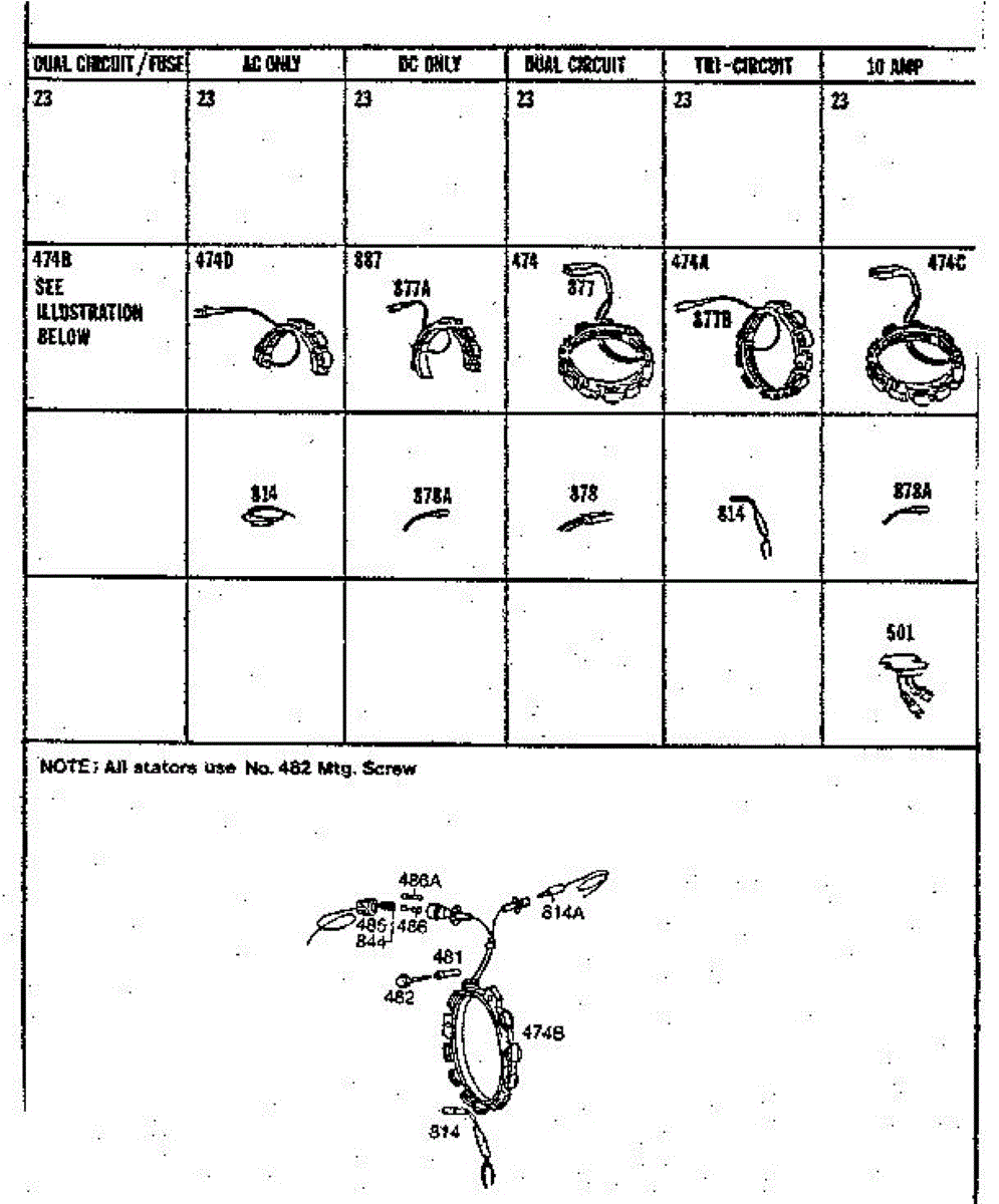 Parts for Briggs & Stratton 326400 TO 326499 (0630 - 0771): Stator Chart Parts
