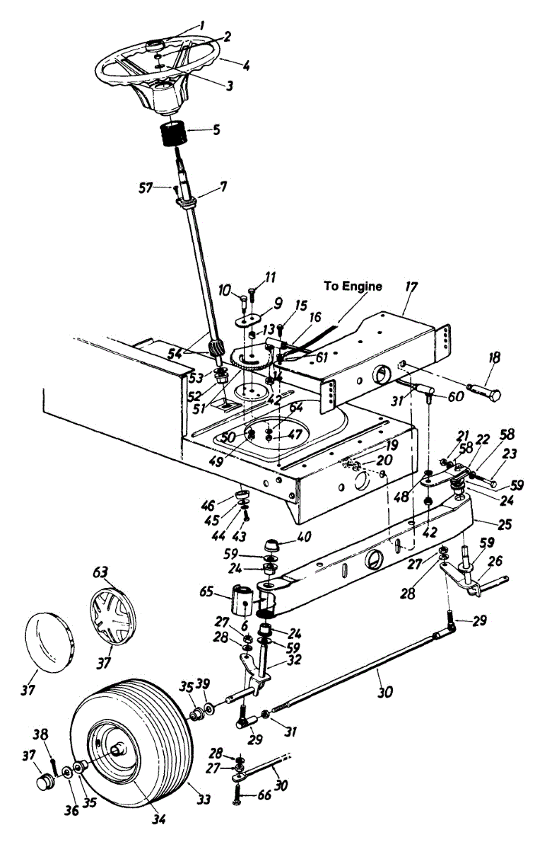 Tie rod connects steering components on lawn tractors and garden tractors. Replace if bent, cracked, or worn to restore proper steering linkage alignment.