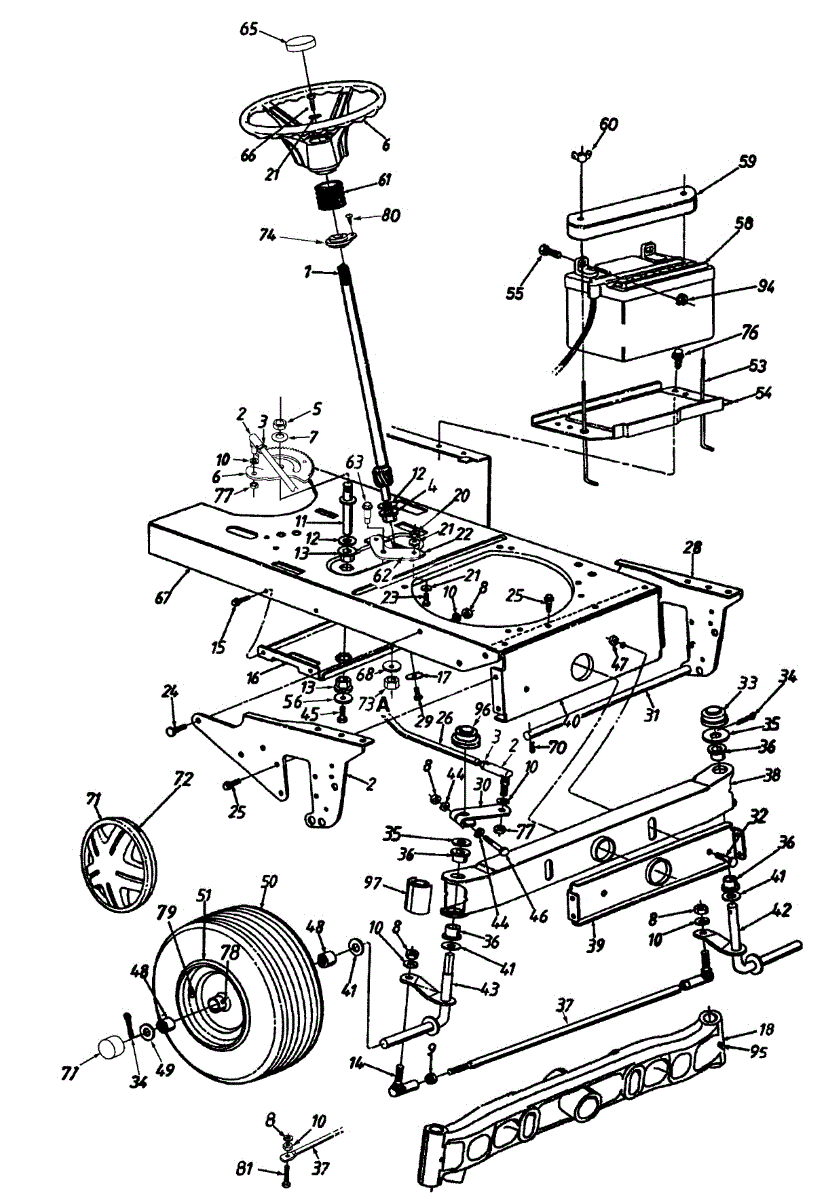 Parts for Yard-Man 14AJ844H401 / 1997: Steering And Wheel Assembly Parts