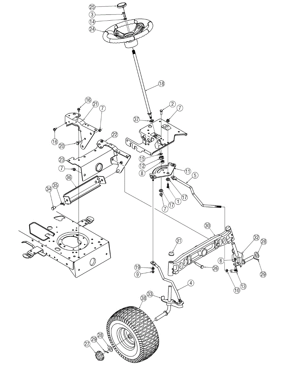 This steering shaft is a replacement part for lawn tractors. The shaft is used to provide a link to the gear plate and the steering wheel. If there is trouble getting the tractor to turn properly, the problem could be due to a damaged steering shaft. Replace it to ensure the tractor can steer properly.The shaft is made from durable metal, and it should last a long time in the tractor. However, there is the chance that it could become bent if there is an accident. It might also start to corrode over time since it is made from metal.The steering shaft is compatible with many lawn tractor models from MTD, Yard Machines, Bolens, Yard-Man, Troy-Bilt, Cub Cadet, White Outdoor, and Husky. This part is sold individually. The shaft is an authentic OEM replacement part that was sourced right from the manufacturer.