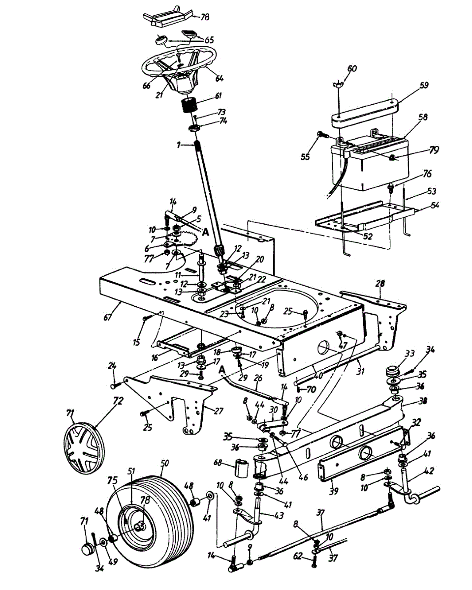 Parts for Mtd 146P828H134 / 1996: Steering Assembly / Axle, Front / Wheels, Front / Battery / Frame, Lower Parts