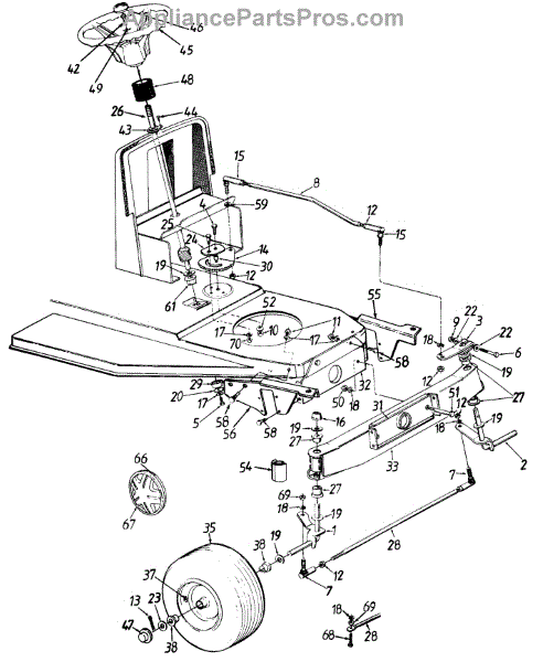 Parts for Yard Machines 13AH450F302 / 1997: Steering Assembly / Axle, Front / Wheels, Front Parts
