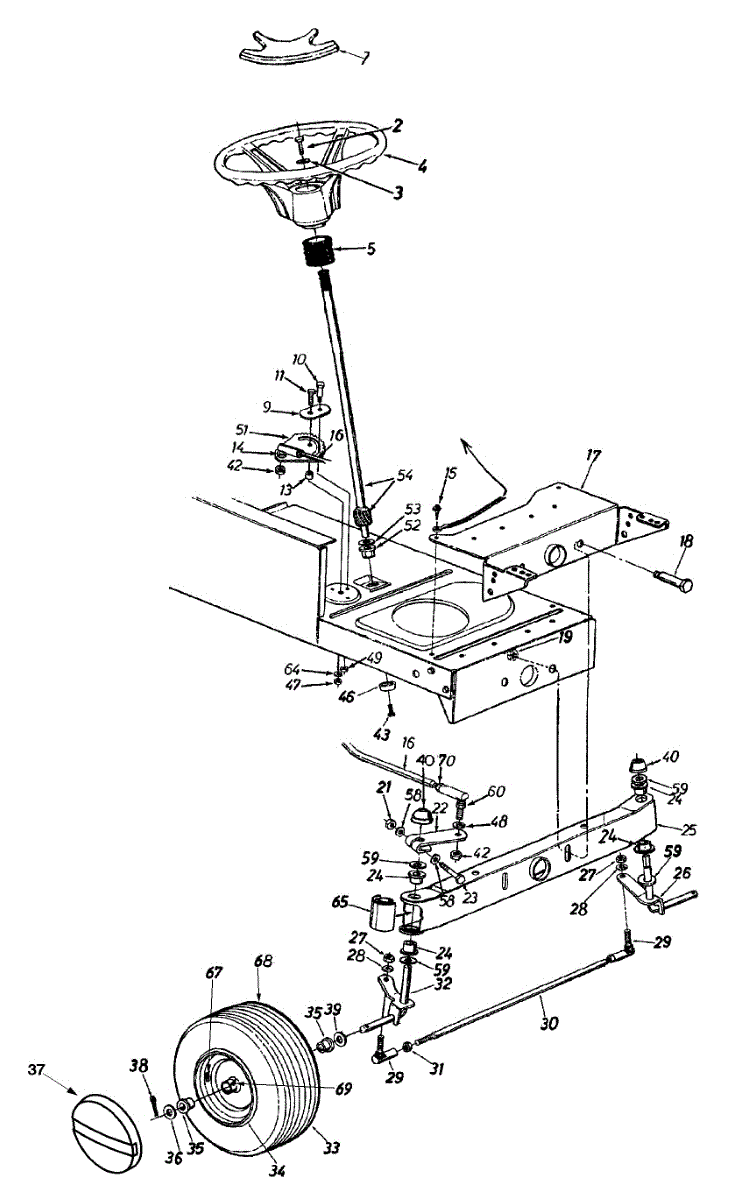 This authentic OEM replacement part is a steering shaft intended to be used on lawn tractors. A steering shaft connects the steering wheel to the rest of the steering mechanism. As a user rotates the steering wheel, the steering shaft also rotates to move the pinion along the steering rack. The more the steering shaft rotates, the more the pinion travels along the rack, and the more the wheels turn in the direction of the steering wheel. Steering shafts most commonly have to be replaced if the steering mechanism becomes worn out or stripped. When this happens, steering will be more difficult and cause strange clunking sounds. The steering wheel may also feel looser than normal and may not recenter after being turned. Leaving a faulty steering shaft unrepaired can lead to accidents. Replacing the steering shaft means detaching the lower deck of the lawn tractor from the upper frame, then removing the steering wheel, adapter, fuel tank, and old steering shaft. This requires a socket wrench set and can is an intermediate-level repair. This part is compatible with MTD, Yard Machines, Troy-Bilt, Yardman, Husky, and Bolens lawn tractors. It ships individually and is sourced from the original manufacturer.