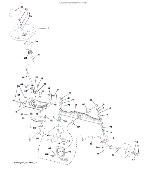 Connects the steering shaft to the steering wheel on lawn tractors. Replace if cracked, broken, or worn from age and general use.