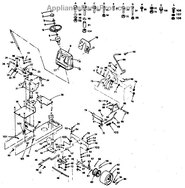 Parts for Craftsman 917254580: Steering Assembly Parts