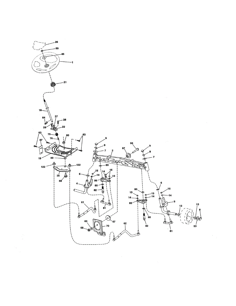 Steering shaft connects the steering wheel to the gearbox on riding mowers and lawn tractors. Replace if bent, cracked, or worn for proper steering control.