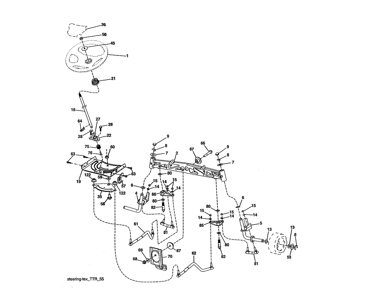 Steering shaft connects the steering wheel to the gearbox on riding mowers and lawn tractors. Replace if bent, cracked, or worn for proper steering control.