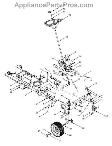 This steering gear is an integral part of the guidance mechanism for riding mowers and lawn tractors. This gear meshes with the turning mechanism of the wheels, connecting the front axle to the steering column. The constant, short diameter turning of riding mowers puts a tremendous amount of pressure on the steering pinion gear as well as the steering plate, causing the teeth of each of these parts to wear out. Over time, the steering will become less responsive until eventually the drive wheels will not respond at all when the steering wheel is turned. This is usually an indication that the steering pinion gear is stripped and must be replaced. Replacing this gear involves removing the nut and bolt that fix the gear to the mowing housing. Often, the bushing that sits beneath the pinion gear also needs to be replaced because of wear, and this is the best time to do that, as well. It's also a good idea to see if the steering plate teeth are also worn, as this is the ideal time to replace it as well. All parts should be replaced with genuine OEM parts, manufactured, as this replacement part is, according the specs of the original part. This pinion gear is compatible with Huskee, Murray, Bolens, Yard Man, Troy-Bilt, MTD, Yard Machine, and Cub Cadet riding mowers. This part sold individually.