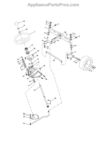 This part is a replacement steering shaft assembly. This is a genuine OEM part made by Husqvarna and has been sourced directly from the manufacturer. This part can be used to replace a damaged or defective steering shaft assembly in a variety of lawn tractor models. The steering shaft assembly is an essential component of a lawn tractor's steering mechanism, as it connects the sector gear to the steering wheel. If the steering wheel is difficult to turn or won't turn at all, the steering shaft may be the issue and thus will need to be replaced. It is always recommended that the appropriate safety precautions are adhered to when attempting to fix any machinery. Proper tools are required to replace this part, including a socket set, pliers, a mallet, and a jack. For more accurate information on how and where to install this steering shaft assembly, the appropriate owner's manual and included diagrams should be referenced.As an authentic replacement part, this steering shaft assembly is suitable for use on several different models of lawn tractors manufactured by Husqvarna. This is a genuine part made of high-quality, durable materials and is sold individually.