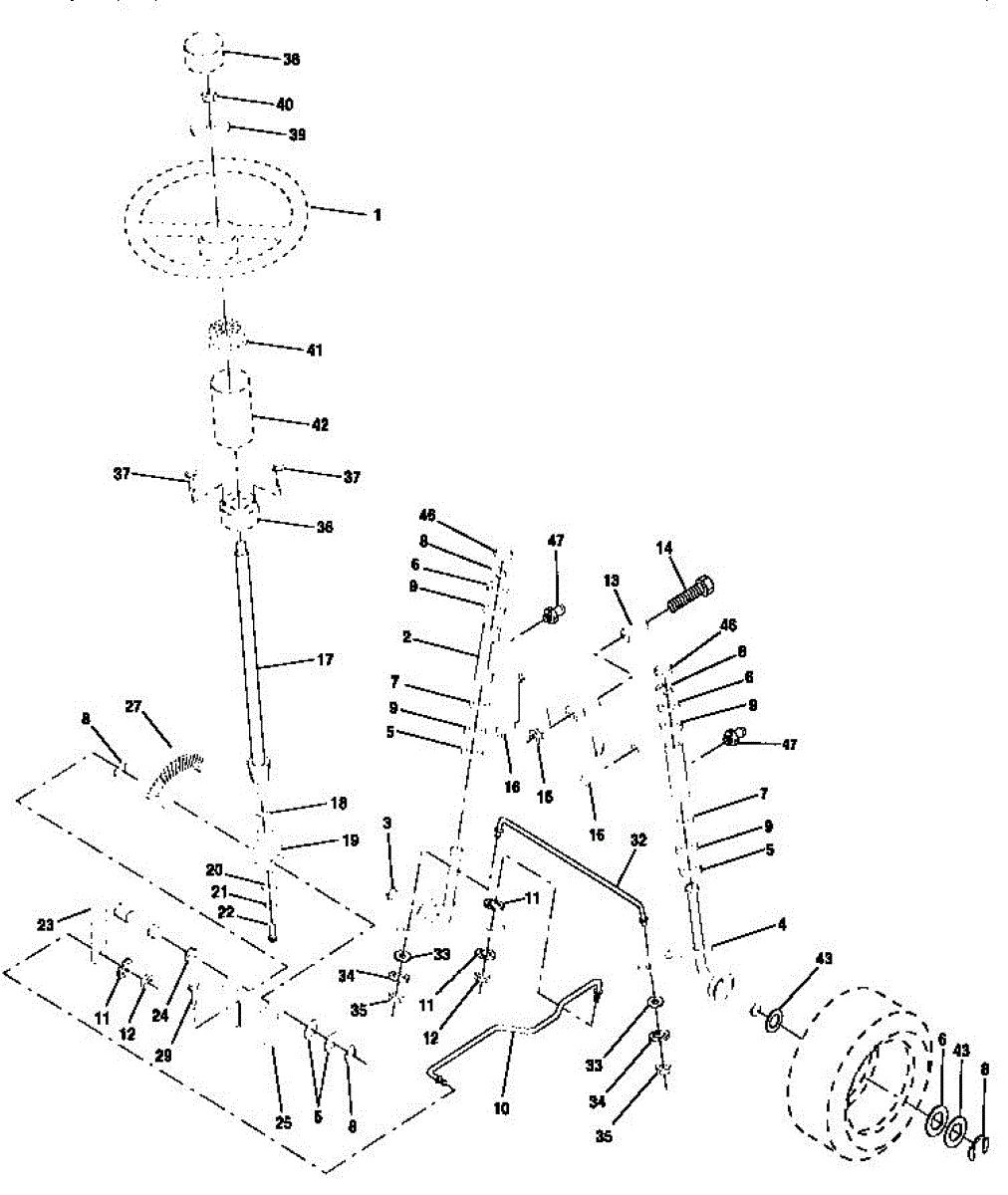 Replacement steering shaft for riding mowers and lawn tractors. Connects steering wheel to steering gear for directional control. Replace if bent, worn, or broken.