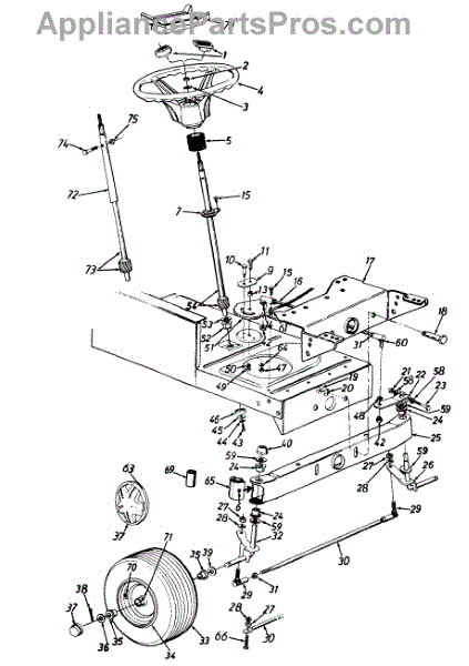 Parts for Yard-Man 134Q694G401 / 1994: Steering Assembly / Wheel, Front / Axle, Front Parts