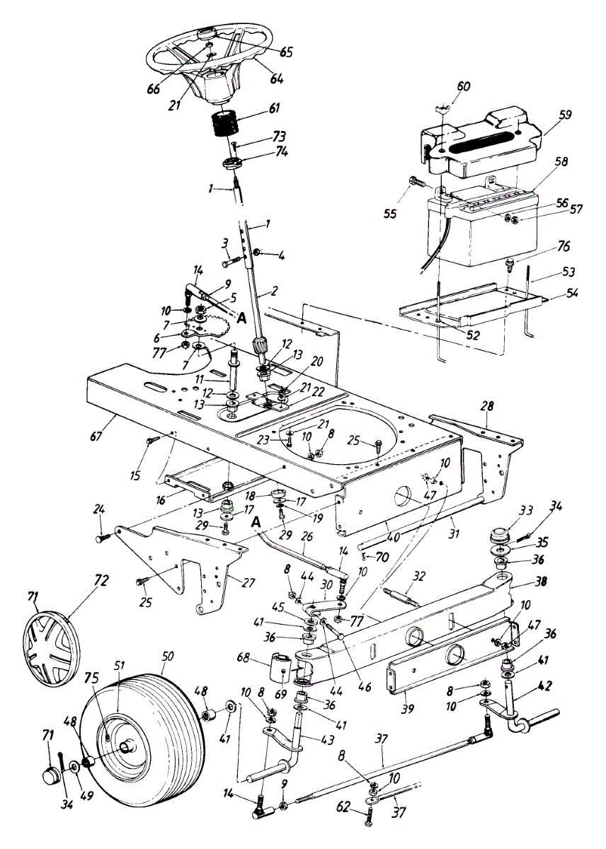 Flat washer for lawn mowers and tractors. Spreads load from bolts and screws to prevent damage. Replace if worn, cracked, or missing hardware.