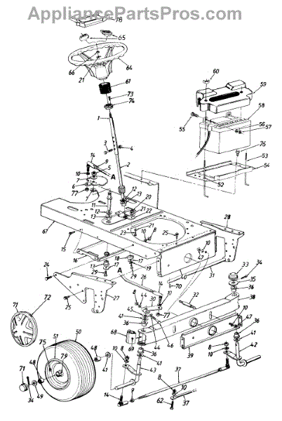 Parts for Mtd 144Q848H336 / 1994: Steering Assembly / Wheels, Front / Axle, Front / Battery Parts