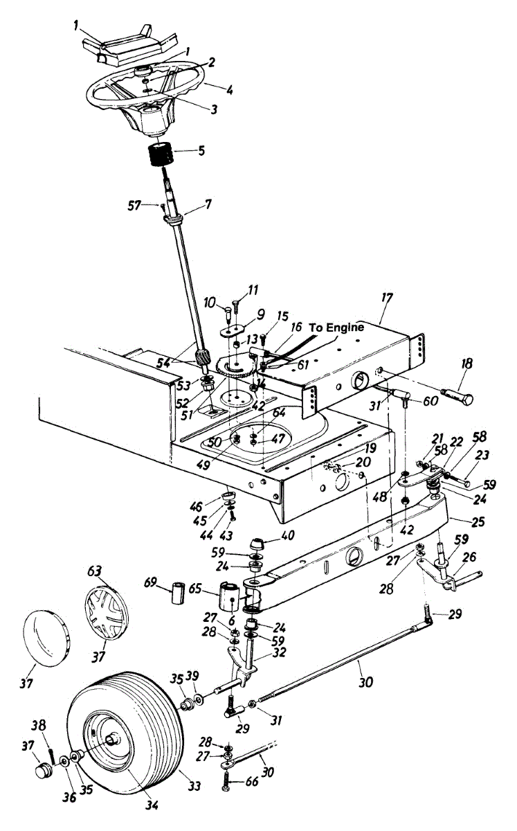 Tie rod connects steering components on lawn tractors and garden tractors. Replace if bent, cracked, or worn to restore proper steering linkage alignment.