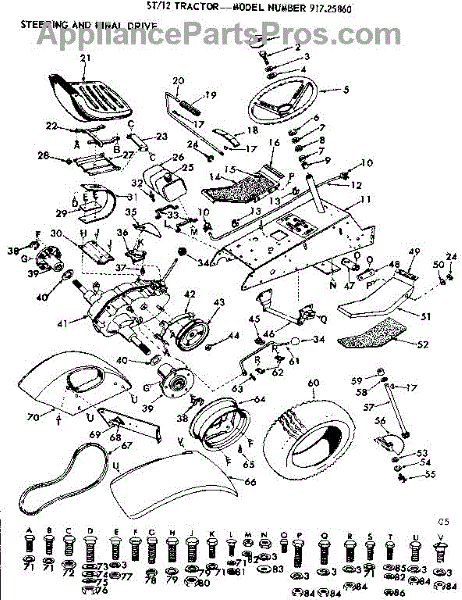 Parts for Craftsman 91725860: Steering And Final Drive Parts