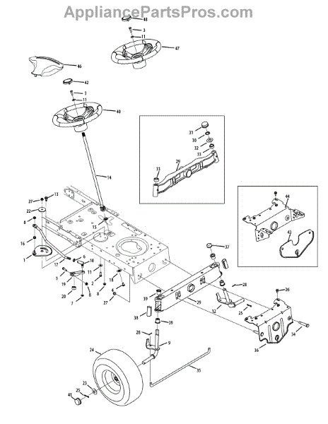 This is a front steering gear assembly that is used in the construction of many models of lawnmowers. It is made of metal and links the drag links with the steering shaft pinion. This creates the ability for the drag links to turn the front wheels when a user turns the steering shaft. The front steering gear is an integral part of the steering assembly and any damage to the component will require replacing it.If the front steering gear assembly is broken or damaged, a replacement will require a socket set. The main symptom of a malfunctioning or faulty gear assembly is the inability to steer the lawnmower. Put the lawnmower on a stable surface and remove the spark plug wire. The steering assembly will need to be removed from the lawnmower to access the front steering gear. Disassemble the tool to reach the gear and remove it from the equipment. Replace with a new part and reassemble other components.This is an authentic OEM replacement component that is directly sourced from the manufacturer. The front steering gear assembly is sold as a single item. It is made for use with lawn mowers manufactured by MasterCut, Craftsman, Yard-Man, Troy-Bilt, Bolens, Murray, Huskee, Yard Machines, and MTD.