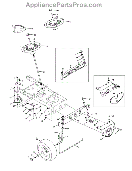 This is a front steering gear assembly that is used in the construction of many models of lawnmowers. It is made of metal and links the drag links with the steering shaft pinion. This creates the ability for the drag links to turn the front wheels when a user turns the steering shaft. The front steering gear is an integral part of the steering assembly and any damage to the component will require replacing it.If the front steering gear assembly is broken or damaged, a replacement will require a socket set. The main symptom of a malfunctioning or faulty gear assembly is the inability to steer the lawnmower. Put the lawnmower on a stable surface and remove the spark plug wire. The steering assembly will need to be removed from the lawnmower to access the front steering gear. Disassemble the tool to reach the gear and remove it from the equipment. Replace with a new part and reassemble other components.This is an authentic OEM replacement component that is directly sourced from the manufacturer. The front steering gear assembly is sold as a single item. It is made for use with lawn mowers manufactured by MasterCut, Craftsman, Yard-Man, Troy-Bilt, Bolens, Murray, Huskee, Yard Machines, and MTD.