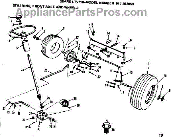 Parts for Craftsman 917252653: Steering, Front Axle And Wheels Parts