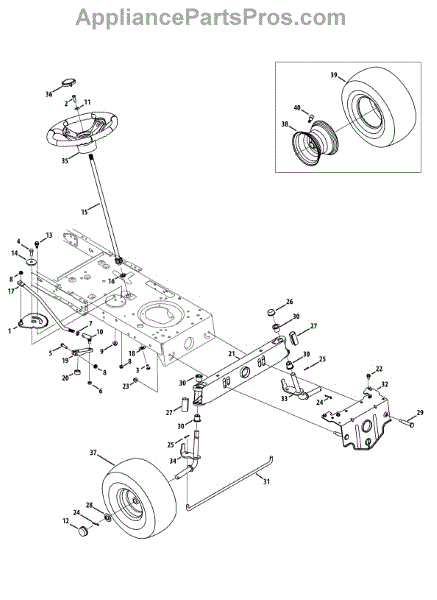 This replacement part is a tire. It is a genuine replacement part made by MTD. These tires are commonly found in riding lawnmowers and assist the user in turning and maneuvering the machine to the desired locations.A new tire might be needed if the current ones are popped or leaking air. It is possible that over time the tires may lose traction and will need to be replaced. If one or two tires need replacing it is recommended that the user replaces all four tires to ensure consistency. This should be a quick repair and the user might need a screwdriver or pliers. This tire is sold individually and is sourced directly from the manufacturer to ensure proper fit and long-lasting use. This is a genuine OEM replacement part. Be sure to purchase the correct amount as most lawnmowers require more than one tire.