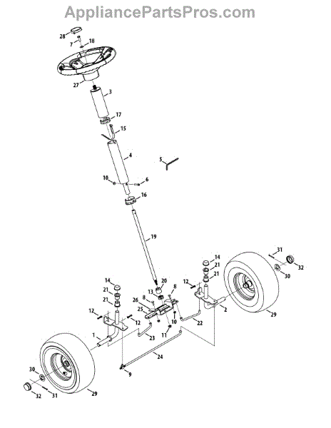 This replacement part is a front axle assembly. It is a genuine replacement part made by MTD. The axle assembly typically assists the wheels in rotating in the proper direction during use so that the user may move the machine in the proper direction. A new axle assembly might be needed if the user notices that the wheels in the appliance are not rotating smoothly or at all. It is possible that after a while the axle parts can become worn down or stripped due to normal wear and tear. If this is the case it is recommended that they be replaced as soon as possible. This axle assembly is sold individually and is sourced directly from the manufacturer. This is also a genuine OEM replacement part. Be sure to purchase the correct amount as many machines require more than one.