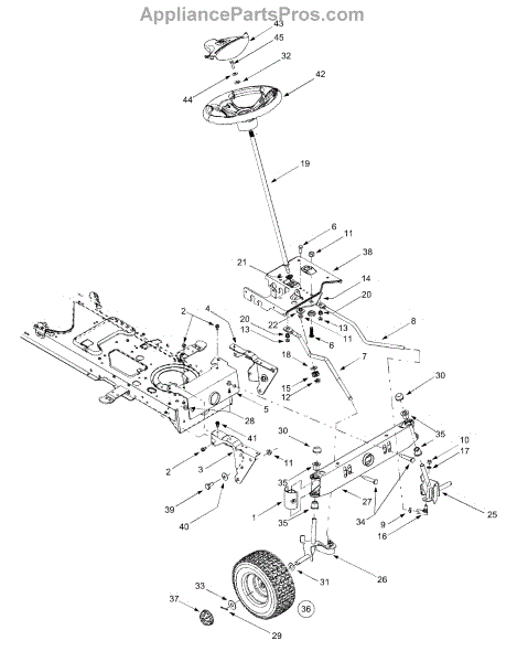 If your lawn tractor has uneven cutting or the left wheel won't turn properly, this left hand axle assembly restores proper blade rotation and wheel function.