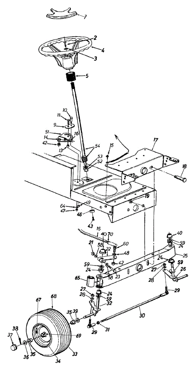 This authentic OEM replacement part is a steering shaft intended to be used on lawn tractors. A steering shaft connects the steering wheel to the rest of the steering mechanism. As a user rotates the steering wheel, the steering shaft also rotates to move the pinion along the steering rack. The more the steering shaft rotates, the more the pinion travels along the rack, and the more the wheels turn in the direction of the steering wheel. Steering shafts most commonly have to be replaced if the steering mechanism becomes worn out or stripped. When this happens, steering will be more difficult and cause strange clunking sounds. The steering wheel may also feel looser than normal and may not recenter after being turned. Leaving a faulty steering shaft unrepaired can lead to accidents. Replacing the steering shaft means detaching the lower deck of the lawn tractor from the upper frame, then removing the steering wheel, adapter, fuel tank, and old steering shaft. This requires a socket wrench set and can is an intermediate-level repair. This part is compatible with MTD, Yard Machines, Troy-Bilt, Yardman, Husky, and Bolens lawn tractors. It ships individually and is sourced from the original manufacturer.
