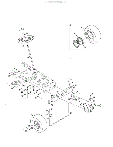 This is a front steering gear assembly that is used in the construction of many models of lawnmowers. It is made of metal and links the drag links with the steering shaft pinion. This creates the ability for the drag links to turn the front wheels when a user turns the steering shaft. The front steering gear is an integral part of the steering assembly and any damage to the component will require replacing it.If the front steering gear assembly is broken or damaged, a replacement will require a socket set. The main symptom of a malfunctioning or faulty gear assembly is the inability to steer the lawnmower. Put the lawnmower on a stable surface and remove the spark plug wire. The steering assembly will need to be removed from the lawnmower to access the front steering gear. Disassemble the tool to reach the gear and remove it from the equipment. Replace with a new part and reassemble other components.This is an authentic OEM replacement component that is directly sourced from the manufacturer. The front steering gear assembly is sold as a single item. It is made for use with lawn mowers manufactured by MasterCut, Craftsman, Yard-Man, Troy-Bilt, Bolens, Murray, Huskee, Yard Machines, and MTD.