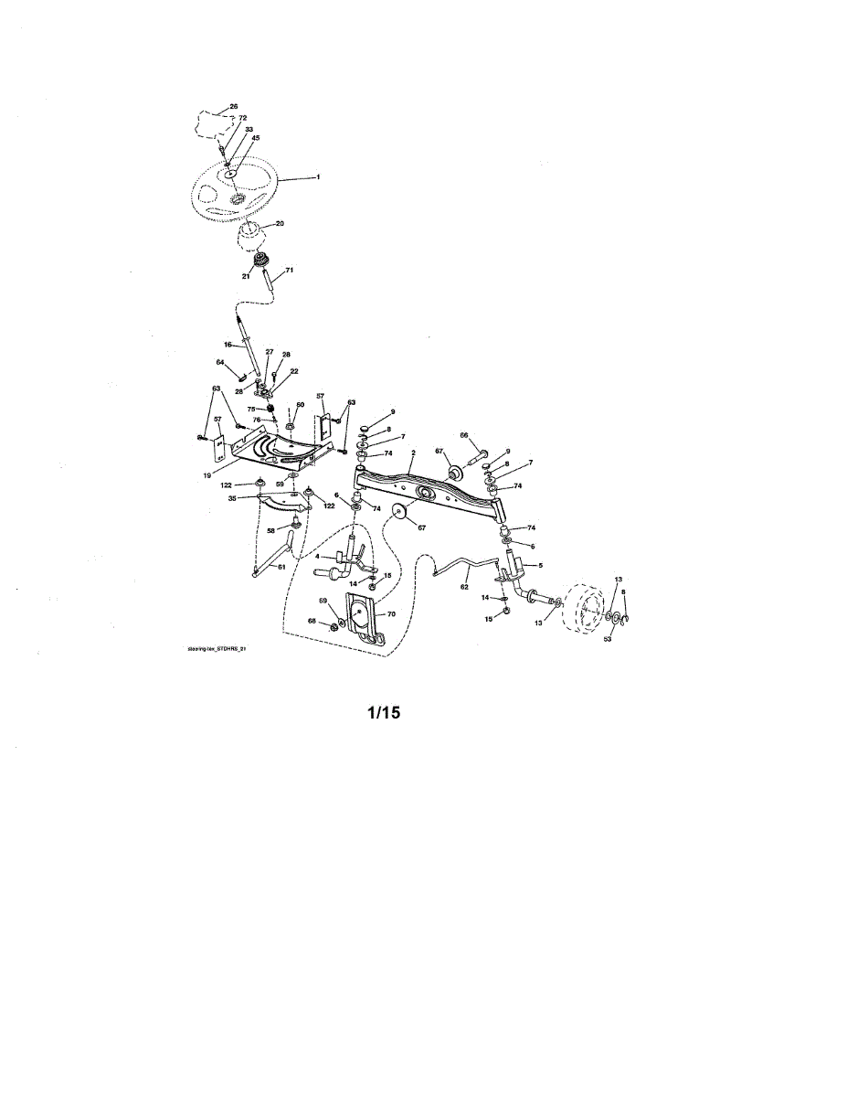 Steering shaft for riding mowers and lawn tractors. Connects steering wheel to front axle assembly. Replace if bent, stripped, or worn out.