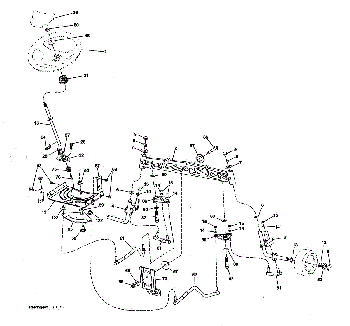 Steering shaft connects the steering wheel to the gearbox on riding mowers and lawn tractors. Replace if bent, cracked, or worn for proper steering control.