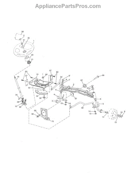Steering shaft connects the steering wheel to the gearbox on riding mowers and lawn tractors. Replace if bent, cracked, or worn for proper steering control.