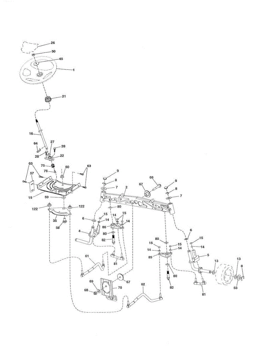 Connects the steering gearbox to the tie rod on lawn tractors and riding mowers. Replace if the link is bent, cracked, or worn, causing loose steering.
