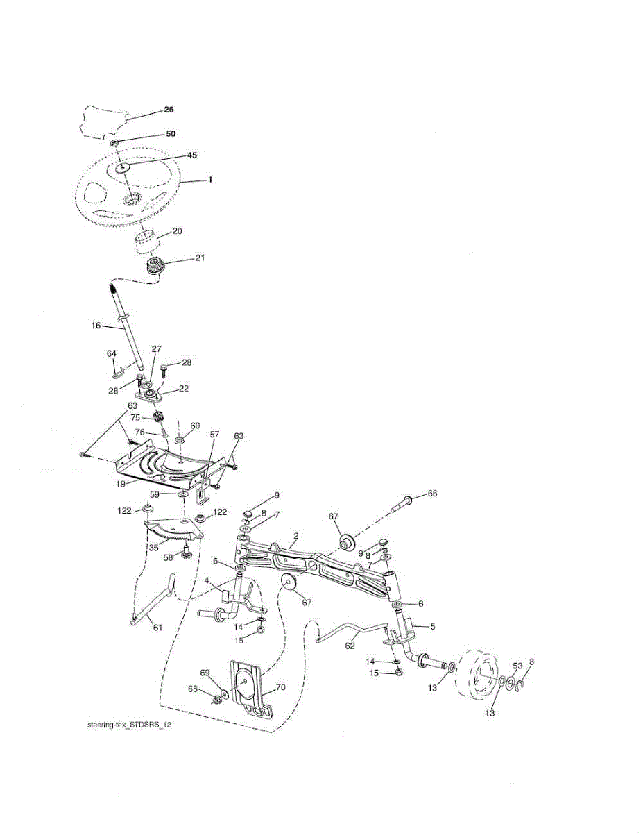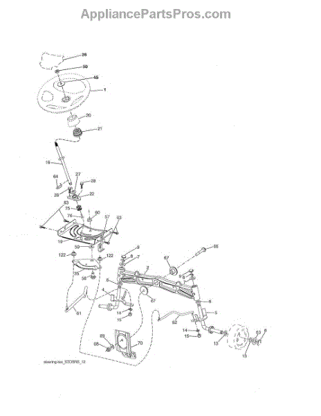 Steering shaft connects the steering wheel to the gearbox on riding mowers and lawn tractors. Replace if bent, cracked, or worn for proper steering control.