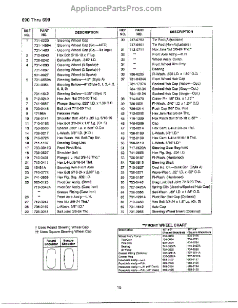 Parts for Mtd 13AU694H062: Steering Wheel / Frt. Wheel Chart Page 2 Parts