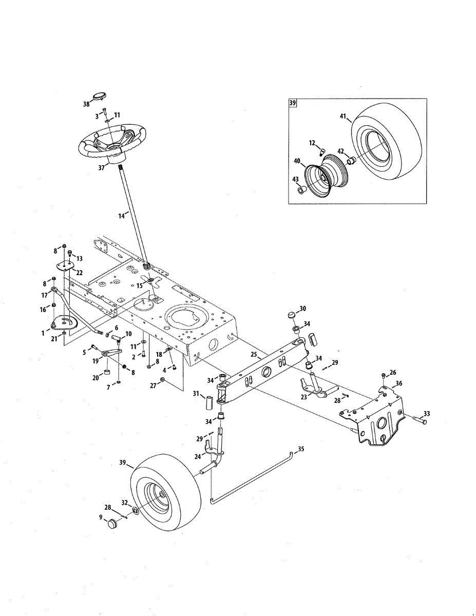 If your lawn tractor steering is popping or feels loose, the steering shaft may be worn or stripped. Connects steering wheel to steering mechanism.
