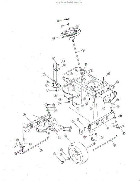 Lawn tractor pulling to one side or wheels misaligned? This front axle ensures proper wheel positioning and straight steering on riding mowers.